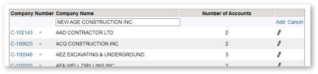 Add and edit Companies on the Manage Companies page. In the Admin menu, click Manage Companies.