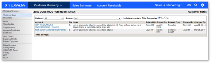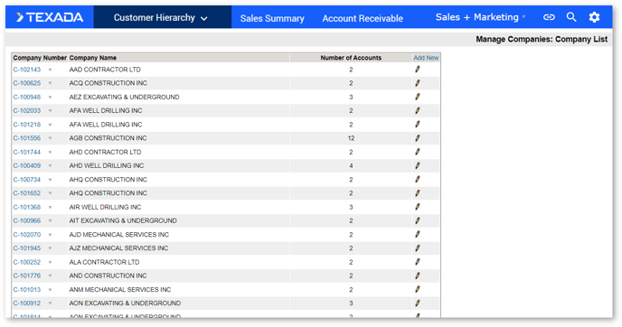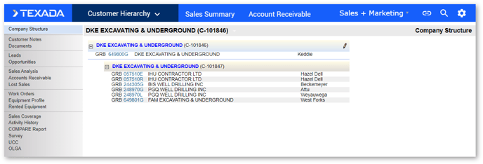 View more detailed customer information including company structure. Customer Hierarchy allows the user to view customer information at a high level or a detailed level.