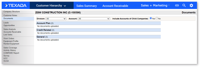 The section allows you to file store any documents pertinent to a company or group of customers. This can include anything from pricing structure, discount programs, satisfaction survey results, and more.