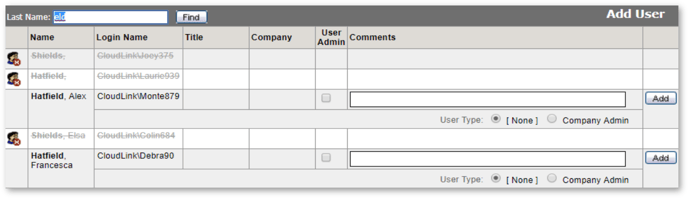 - Click [Add] in the upper right-hand corner of the User Administration window.