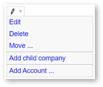 Companies can be organized in a hierarchical structure with other companies that fall under them. The lower level companies are Child Companies, while the higher level companies are called Parent Companies. View the structure of a company and the associated accounts with the Company Structure view.
