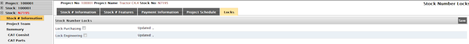 Some sections may include Lock options (for example, purchasing and engineering). When a section is locked, users can no longer create new entries in that area. If updates are required after locking, changes must be managed through a PCR (Project Change Request) process.