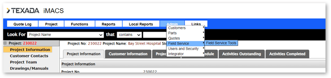 Required Tools for Field Service can be chosen from a drop-down list, and can indicate if the tool is required for the site test, and if it's being supplied by the customer. If a tool does not appear in the list, it can be added by choosing Admin --> Field Service --> Field Service Tools from the top menu of the main window.