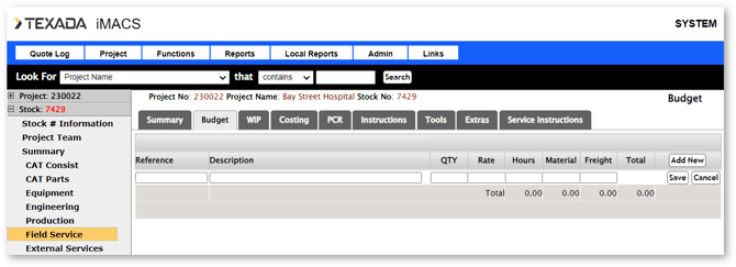 Each class in a stock number has its own budget. The budget line items can be manually entered, or imported from Power Systems Quoter (this function is only available for Power Systems stock numbers).