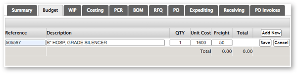 To create a budget manually, click add new and enter the information including description, quantity, and unit cost, then click save. Repeat this for all budget line items, for each class.