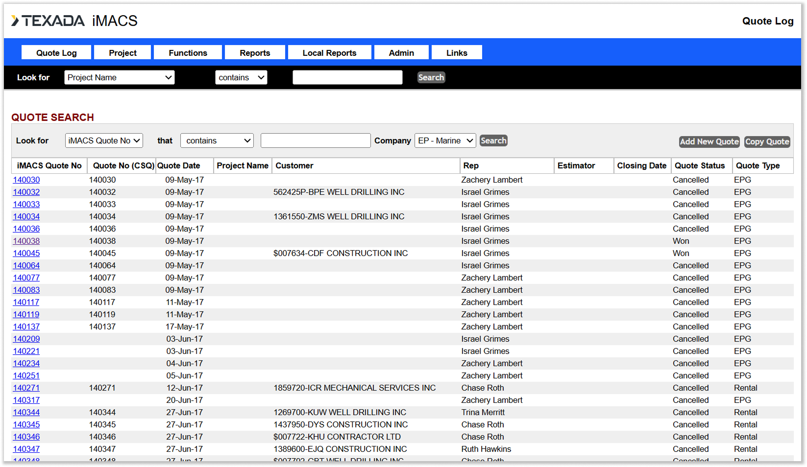 The following article covers the Quote Log and Customers and Prospects pages in iMACS.