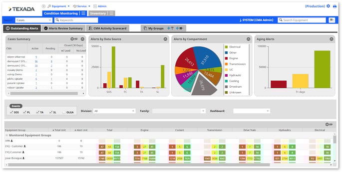 The Condition Monitoring (CM) Portal is a workflow tool for Condition Monitoring Analysts (CMAs) to use when aggregating and reviewing machine data. Capturing incoming data from EquipmentLink, including SOS results, fault codes, work order history, service letters, inspections, and other supporting documents, CM Portal creates a comprehensive picture of ongoing machine health in an easy-to-use dashboard where the user can create fleets of equipment to monitor.