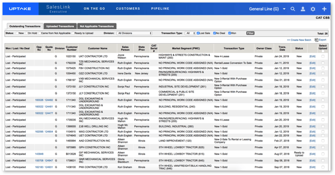 Once you’ve made all necessary edits and filtered out transactions you don’t need, check the Select Upload box next to all transactions you want to send to CAT. Click the [Create New Batch] button to upload the transaction. Your batch will then appear in the Uploaded Transactions section. Any transactions that were designated as Not Applicable will appear in the Not Applicable Transactions sections.