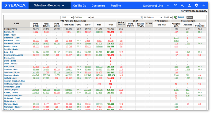 Click the Parts and Service Performance Summary link under PIPELINE in the top navigation bar. The Performance Summary page displays.