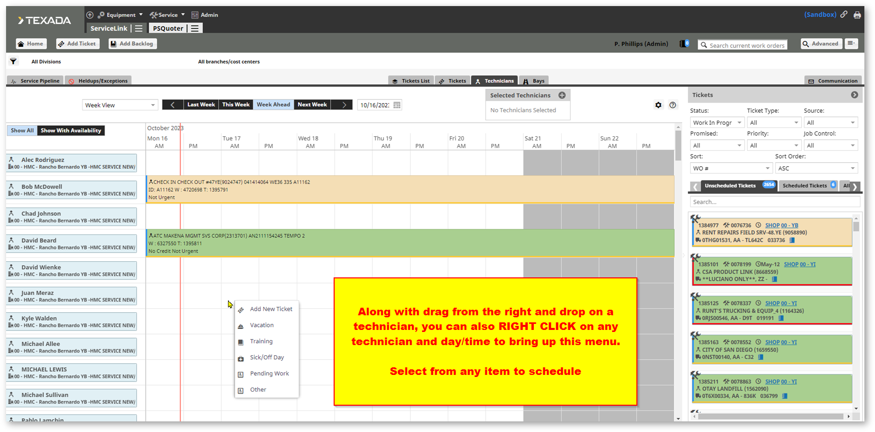 next to ServiceLink in the top navigation menu, then select Technicians under Scheduler. You can also click the Technicians tab